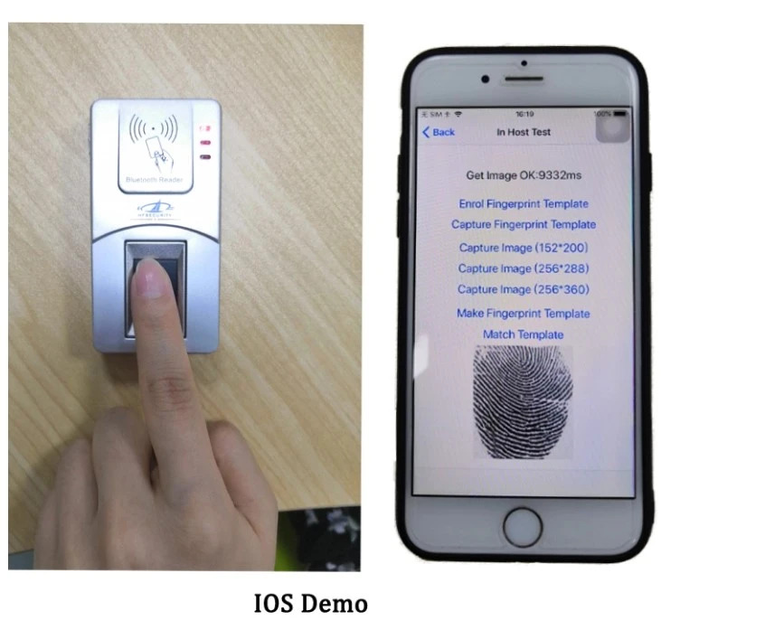 HF4000plus is a bluetooth optical fingerprint scanner, it uses the same program as HF7000, also for Android, windows, linux, ios. For the usage, demo, please refer to HF7000 Bluetooth fingerprint scanner description.